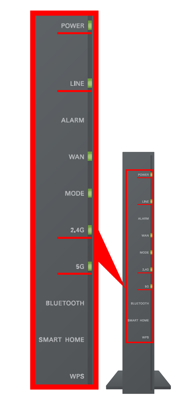 下記画像をご参照のうえ、通信機器のランプ状態をご確認ください。